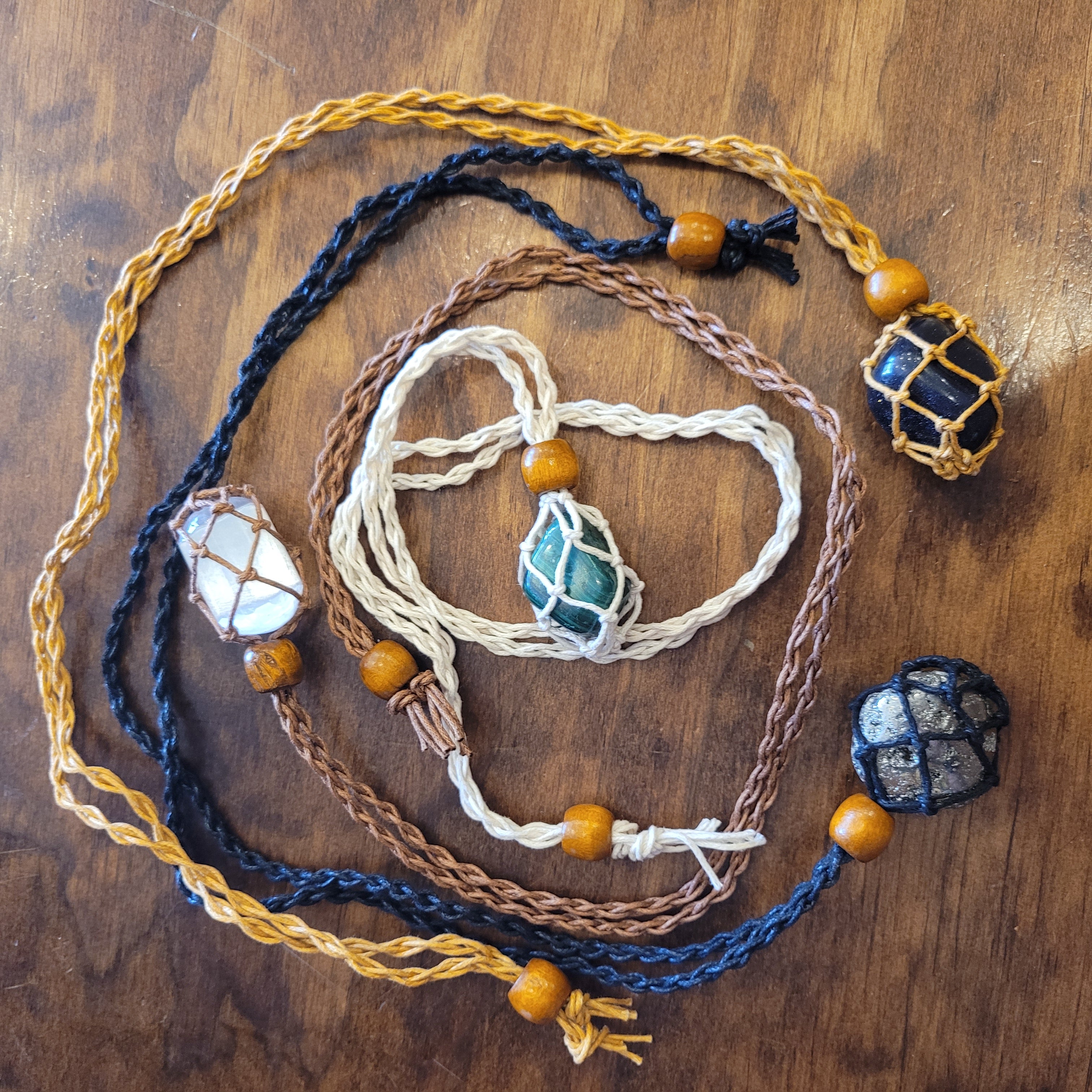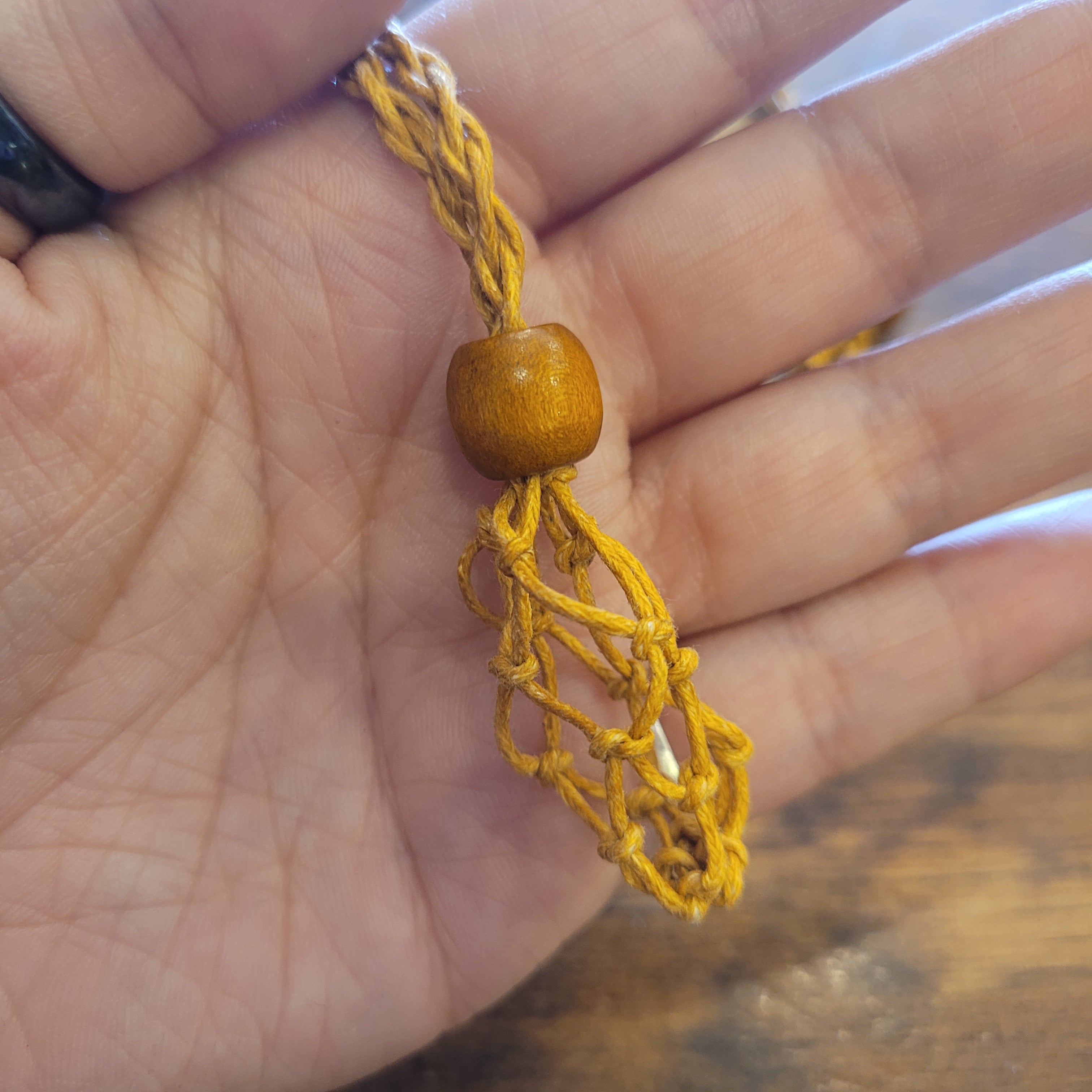 These cute crystal holder necklaces are so in right now! Adjustable in both pouch size and necklace length, you can fit most tumbled pocket stones and can change them out as your energy flows.