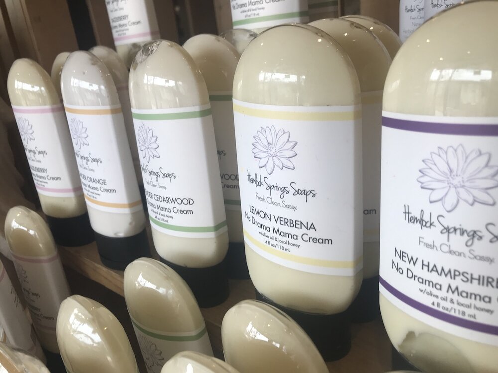 Extra virgin olive oil and raw local honey combine in this rich, luxe cream. The secret ingredient? Apple cider vinegar! It is just as good for you on the outside as it is on the inside. Simple formula thanks to Patti Flynn (a hero in the soaper world!) is a winner with customers. I've made it on and off for several years, but it has been requested several times so it's being added to the line up! Available in a number of fragrance options in convenient (and recyclable 4oz amber tottles).